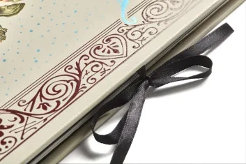 La encuadernación en carrusel desplegable con troqueles consigue un asombroso aspecto circular al unir las cubiertas con las cintas adjuntas al libro, permitiendo ver las seis escenas desde todos los ángulos.