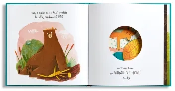 ¡Sorpresa! En mitad del campo aparece un misterioso objeto ovalado que parece llamar la atención de cada animal que lo encuentra. Va pasando de mano en mano: del oso al ratón, al zorro o a la rana. Nadie sabe lo que es pero todos lo quieren y exclaman «¡Es mío!» cuando lo tienen entre sus patas. ¡Pero ninguno se lo queda! Unos a otros consiguen quitárselo de manera astuta. Todos ellos lo desean…. ¡hasta que descubren que el objeto ovalado quizá tenga una sorpresa verde y con dientes puntiagudos en su interior!
