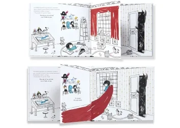 Cada doble página propone la necesidad de un personaje mágico y, al levantar la solapa de media página, se descubre la ingeniosa solución del protagonista.